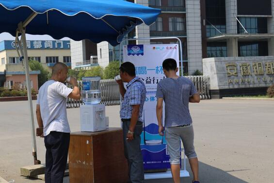 他們用汗水,方便了市民的生活、他們用汗水,洗去了城市的塵埃,因?yàn)橐獔?jiān)守崗位,甚至有時(shí)無(wú)法在口渴時(shí)喝一杯涼水,也無(wú)法在酷暑難耐時(shí)稍作休息。炎炎夏日,一杯清水對(duì)坐在辦公室的市民來(lái)說(shuō),是微不足道的,但是對(duì)高溫酷暑下的為戶外高溫作業(yè)人員來(lái)說(shuō),喝一杯清水在繁忙的一天中卻顯得如此奢侈。7月25日,共青團(tuán)銅陵市委、銅陵日?qǐng)?bào)社聯(lián)合發(fā)起"請(qǐng)喝一杯水"愛(ài)心公益活動(dòng)后,我公司立即響應(yīng)號(hào)召,在我公司大門(mén)口設(shè)立愛(ài)心崗?fù)?愛(ài)心休息站",為在烈日下工作的人們提供夏季的一絲涼意。